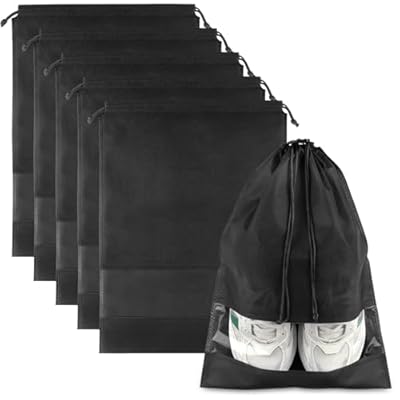 Large Black Travel Shoe Bags - 5 Pcs with Clear Window, Non-Woven Drawstring, 12.6 X 17.3 for Men Women