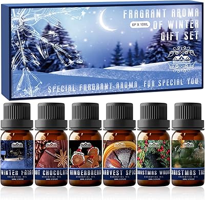 Winter Essential Oils Gifts Set 6 Pack Oil of Winter Essential Oil for Home and Car Care Candle and Soap Making 10ML for Friends and Parents Christmas