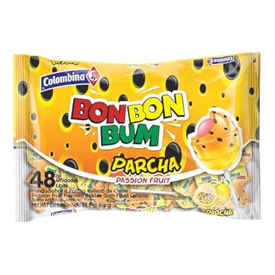 Colombina Bon Bon Bum Lollipops Tropical Passion Fruit Flavor, 48 Count Pack of 1